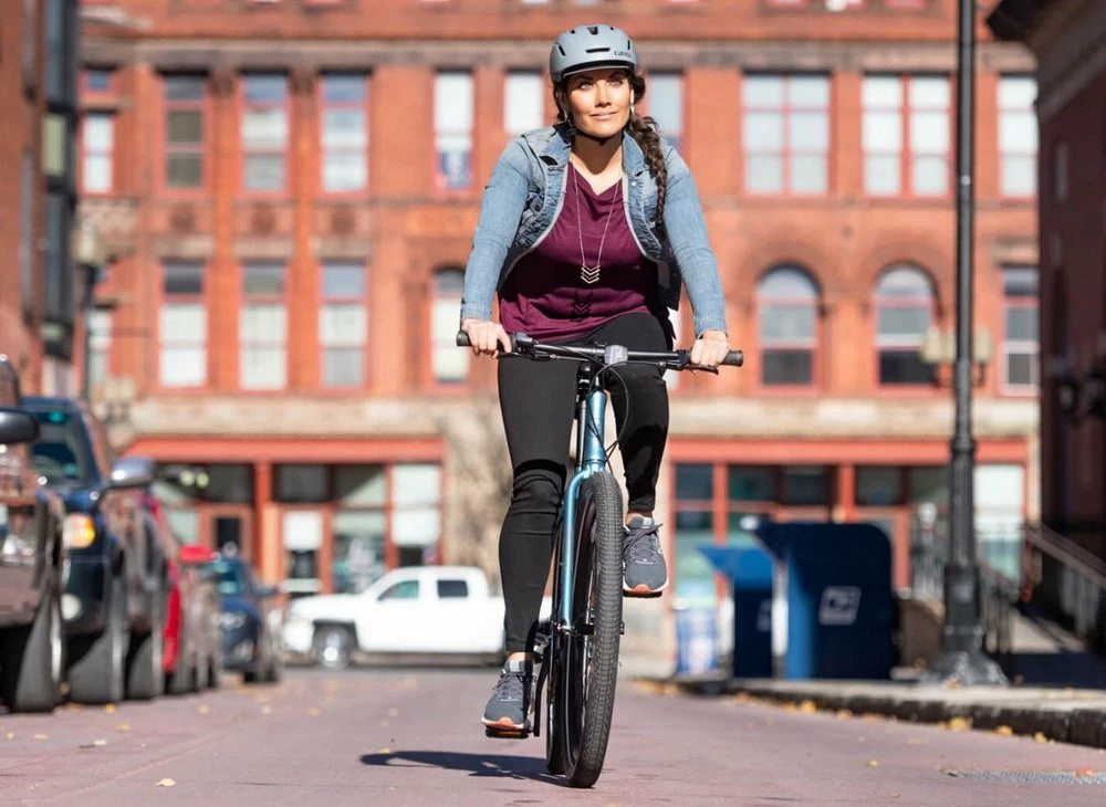 Das Breezer Liberty S1.3+ ist ausgestattet mit einer SR Suntour NEX Disc Coil HLO 700C Federgabel, einer 27-Gang Kettenschltung mit Shimano Deore Schaltwerk und einer hydraulischen Shimano MT200 Scheibenbremse.