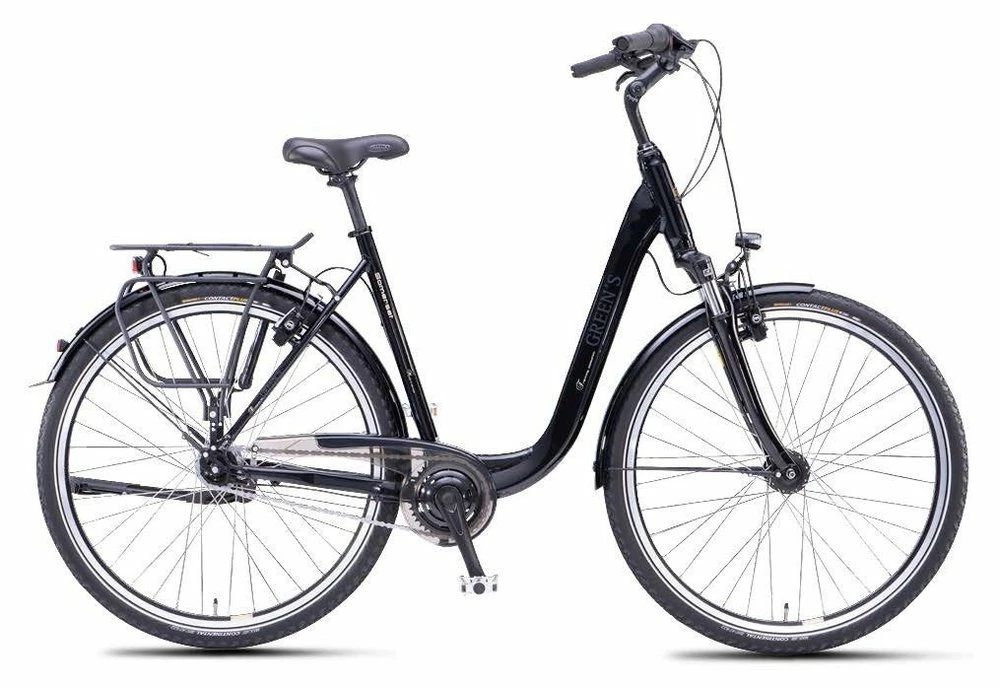 Das Green’s Somerset Comfort Trekking Bike ist ausgestattet mit einer 7-Gang Shimano Nexus Nabenschaltung mit Rücktrittfunktion, einem Green’s Aluminium Rahmen, einer SR Suntour Federgabel und einer Magura HS11 Felgenbremse.
