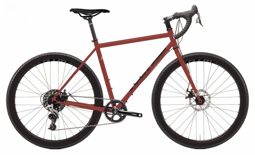 Das Kona Rove Gravel Bike ist ausgestattet mit einer Kona Project Two Cromoly Starrgabel, einer 9-Gang Kettenschaltung mit Microshift Schaltwerk und einer mechanischen Tektro MDC550 Scheibenbremse.