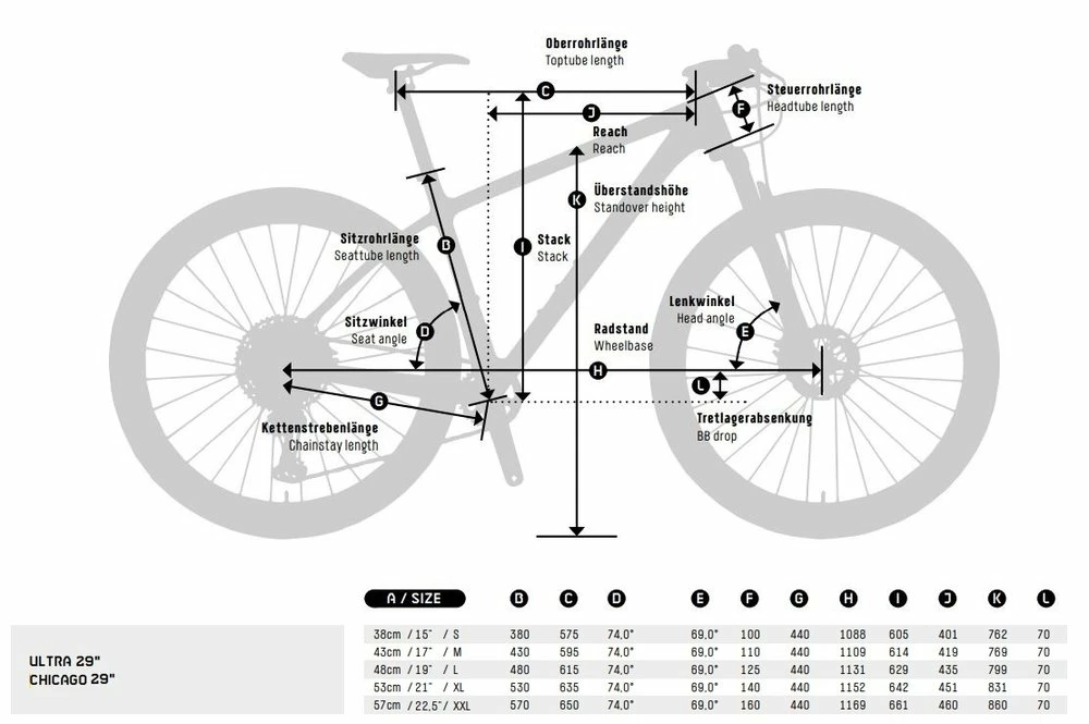 | Größe(n): | (29″) S/38cm, M/43cm, L/48cm, XL/53cm, XXL/57cm |