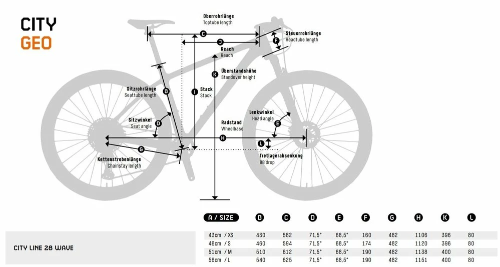 | Größe | 28" Wave XS/43cm, 28" Wave S/46cm, 28" Wave M/51cm, 28" Wave L/56cm |