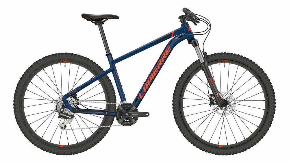 Das Lapierre Edge 2.9 ist ausgestattet mit einer SR Suntour XCE28 Federgabel, einer 21-Gang Kettenschaltung mit Shimano Tourney RD-TY300 Schaltwerk und einer hydraulischen Shimano MT200 Scheibenbremse.