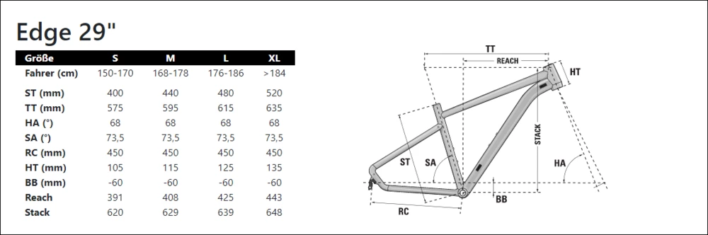| Größe(n): | (29″) S/40cm, M/44cm, L/48cm, XL/52cm |