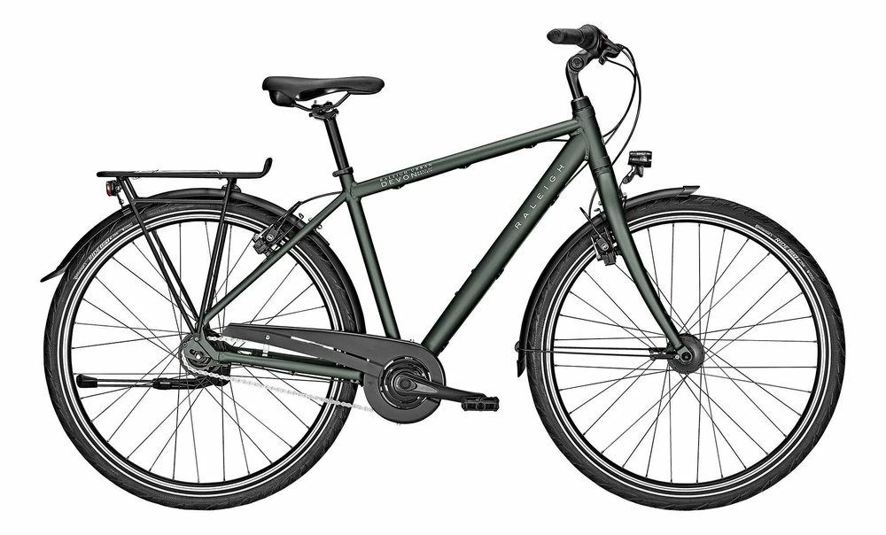 Das Raleigh Devon 8 ist ausgestattet mit einer Raleigh Urban Comfort Starrgabel, einer 8-Gang Shimano Nexus Nabenschaltung mit Freilauffunktion und einer hydraulischen Magura HS11 Felgenbremse.