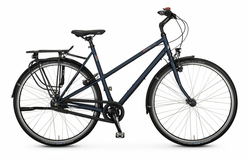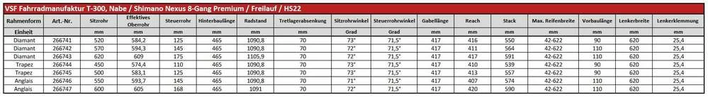 Das vsf fahrradmanufaktur T-300 ist ausgestattet mit einer vsf fahrradmanufaktur CroMo Starrgabel, einer Magura HS22 Felgenbremse und einer 8-Gang Shimano Nexus Premium Nabenschaltung mit Freilauffunktion.